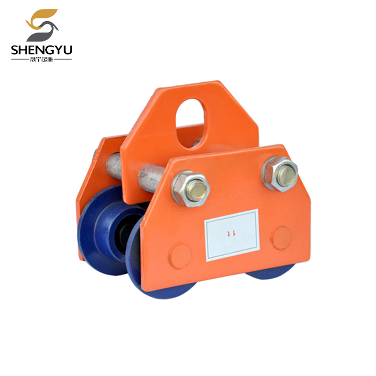 รถเข็นธรรมดาขับเคลื่อนด้วยการดันแบบแมนนวลเพื่อยกของหนัก และวิ่งบนขอบหน้าแปลนด้านล่างของรางไอบีม การแขวนบล็อกโซ่หรือเครื่องจักรยกอื่นๆ ไว้ใต้รถเข็น จะสามารถสร้างรถเข็นยกและขนย้ายแบบแมนนวลได้ มีการติดตั้งบนเส้นทางขนส่งโมโนเรลเหนือศีรษะ (ไม่ว่าจะเป็นทางตรงหรือทางโค้ง) หรือบนเครนคานเดี่ยวแบบแมนนวล แบบสะพาน และเครนคานยื่น ใช้กันอย่างแพร่หลายในการติดตั้งเครื่องจักรและการยกสินค้าในสถานที่ต่างๆ เช่น โรงงาน เหมือง ท่าเรือ อู่ต่อเรือ โกดัง และห้องเครื่องจักร และเหมาะอย่างยิ่งสำหรับงานบำรุงรักษาอุปกรณ์ในสถานที่ที่ไม่มีแหล่งจ่ายไฟ